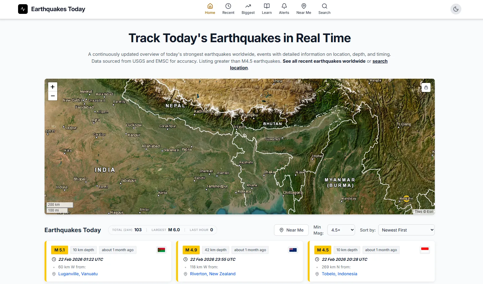 Track Today's Earthquakes in Real Time | Earthquake Today