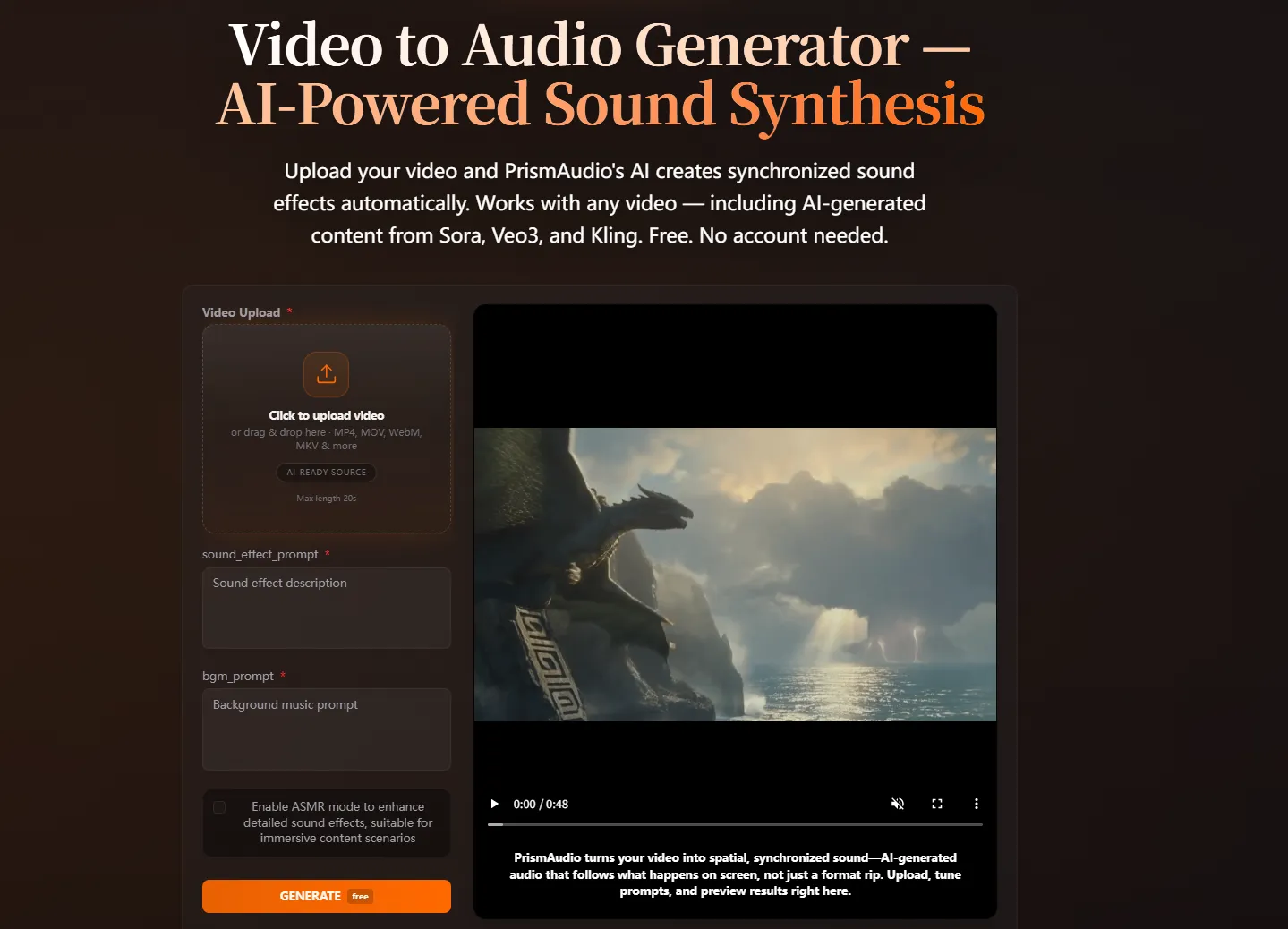 Free Video to Audio Generator — AI Sound in Seconds | PrismAudio