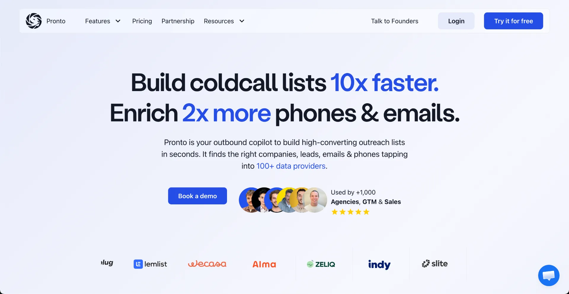 Pronto is an outbound copilot that helps sales teams and agencies build high-converting prospect lists in seconds. It finds the right companies and leads, enriches them with verified emails and phone numbers, and taps into 100+ data providers to surface hiring signals, tech stack data, job changes, and other buying intent signals. With AI qualification, data cleaning, and one-click sync to your outbound stack, Pronto helps teams prospect faster, reach the right people, and book more demos with less manual work.